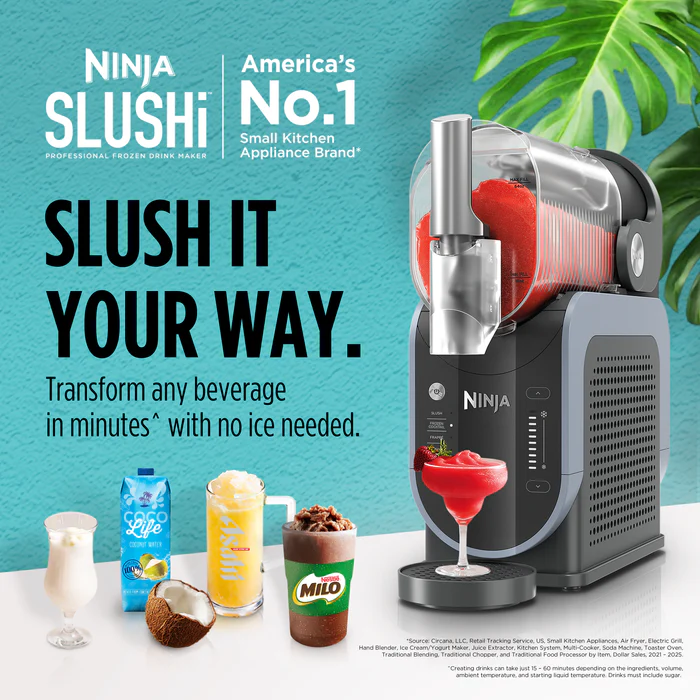 The Ninja SLUSHi™ Professional Frozen Drink Maker is the easiest way to make frozen drinks at home. No ice needed, no blending, no hassles. Create tons of drinks with as few as one ingredient.